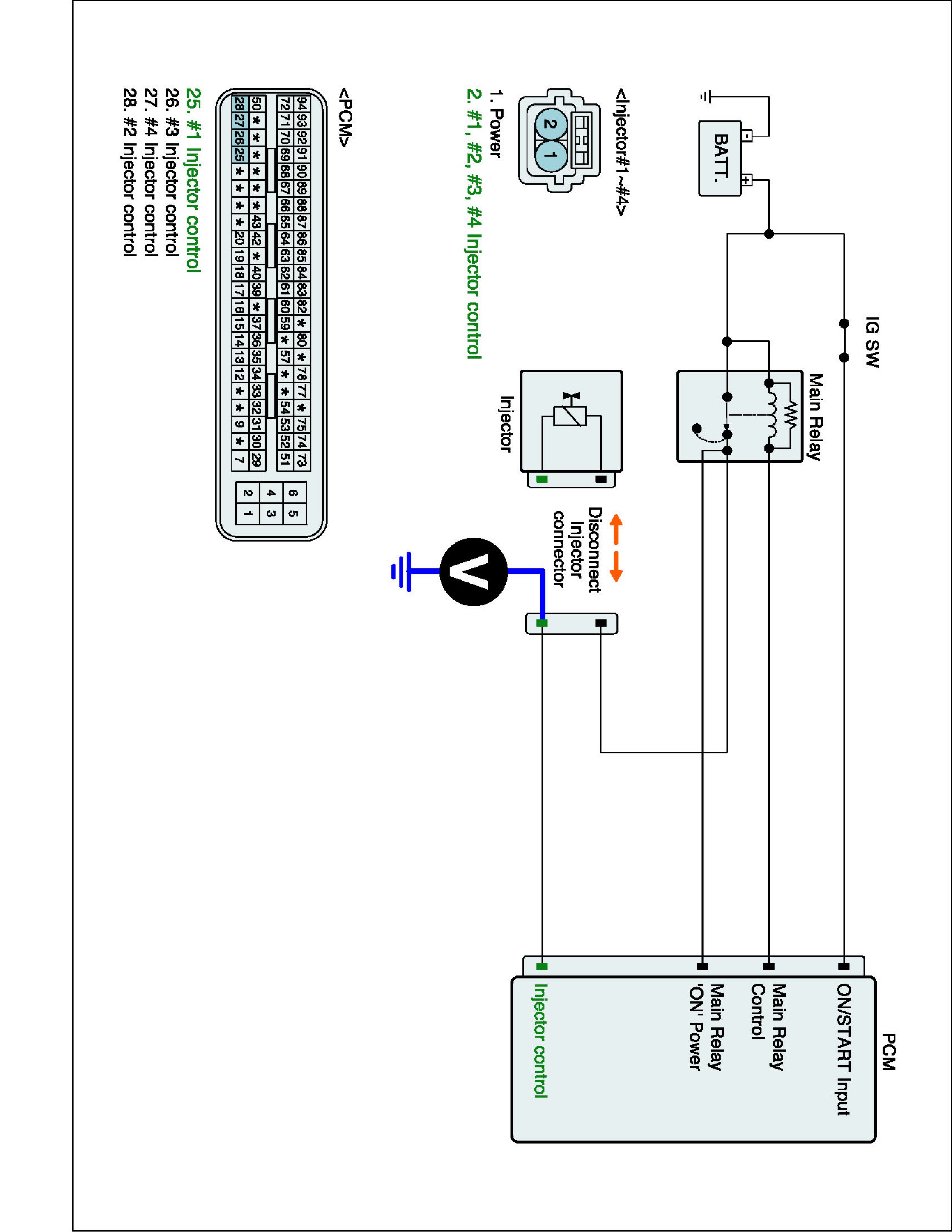 2. Measure voltage between power terminal of the injector harness connector and chassis ground.
