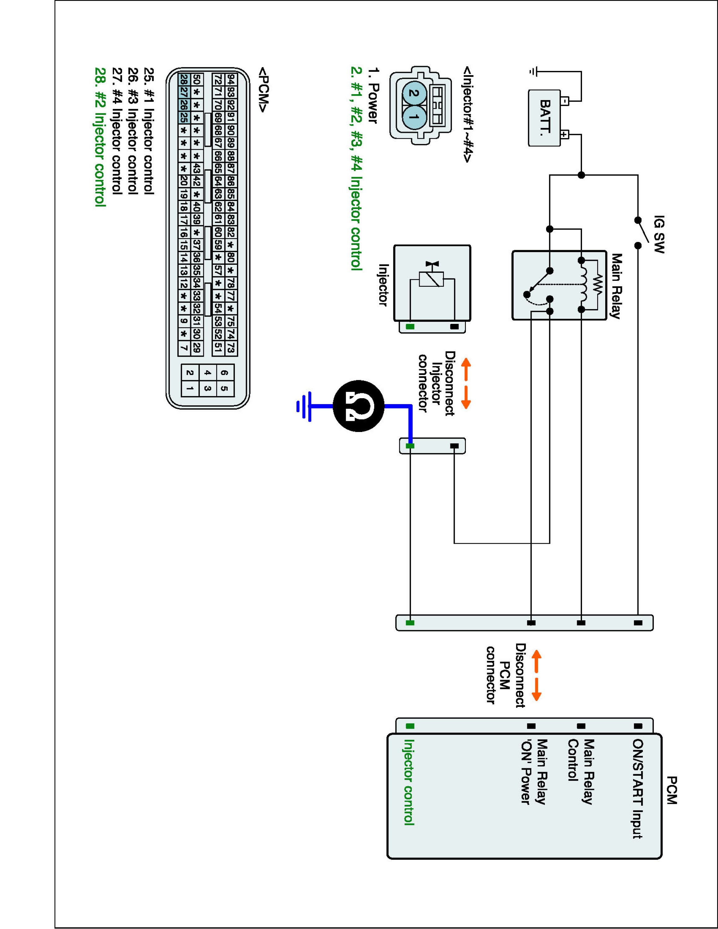 2. Measure voltage between power terminal of the injector harness connector and chassis ground.