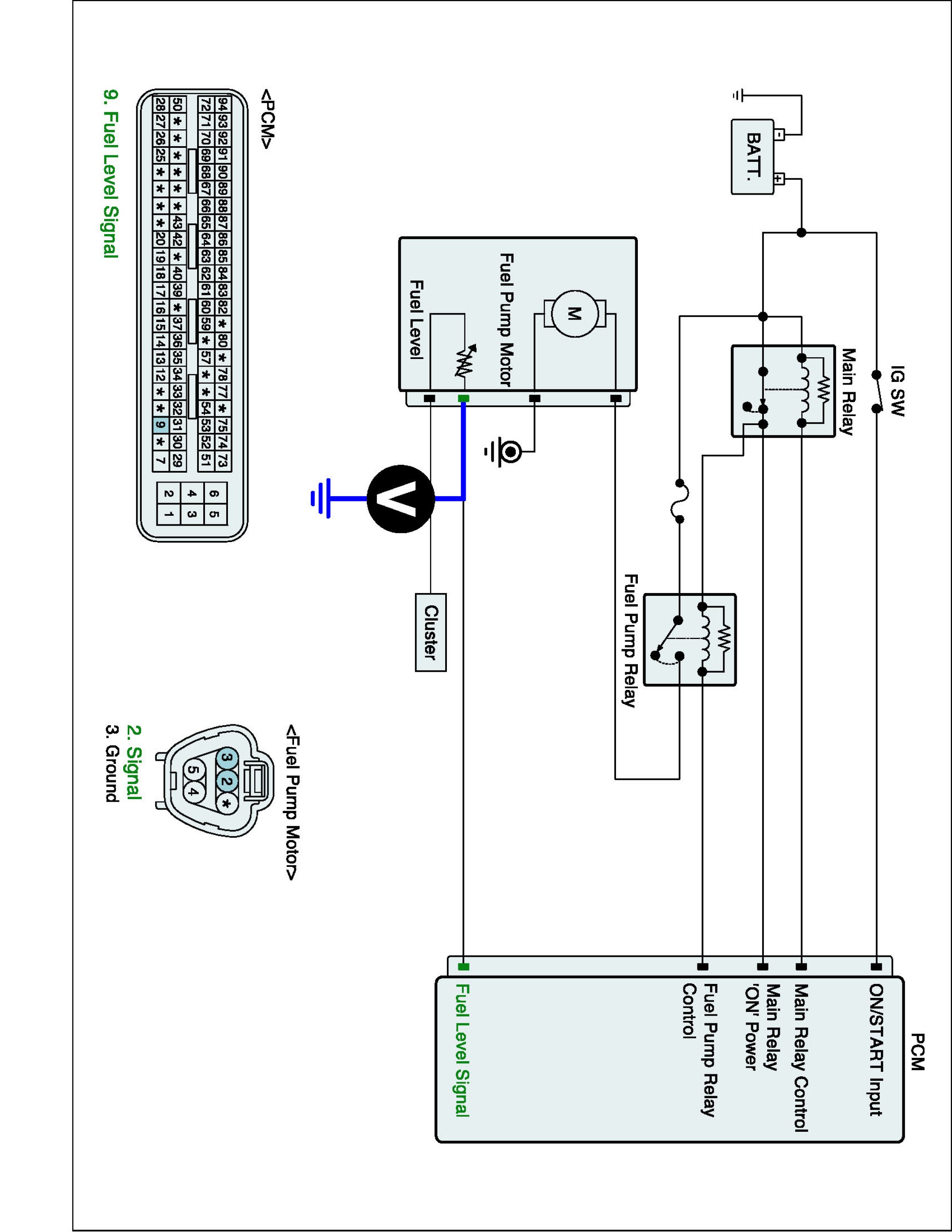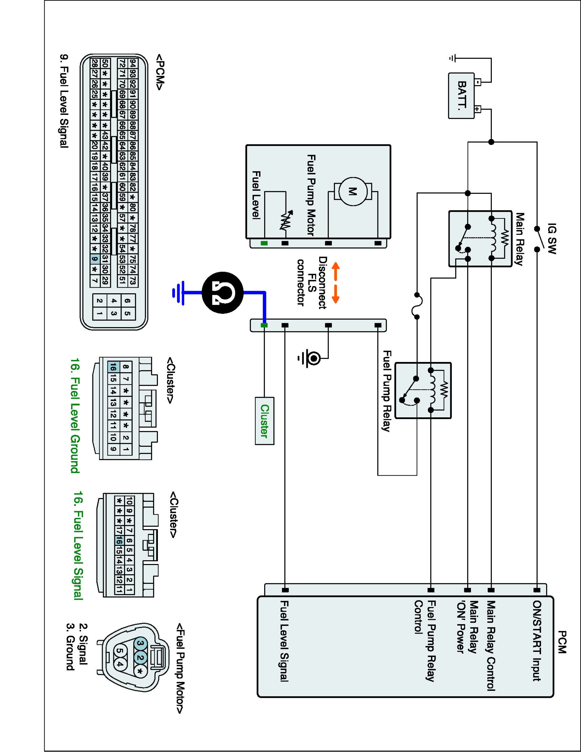 2. Measure voltage between signal terminal of Fuel Level Sender 'A' connector and chassis ground. (Under connector connected condition)