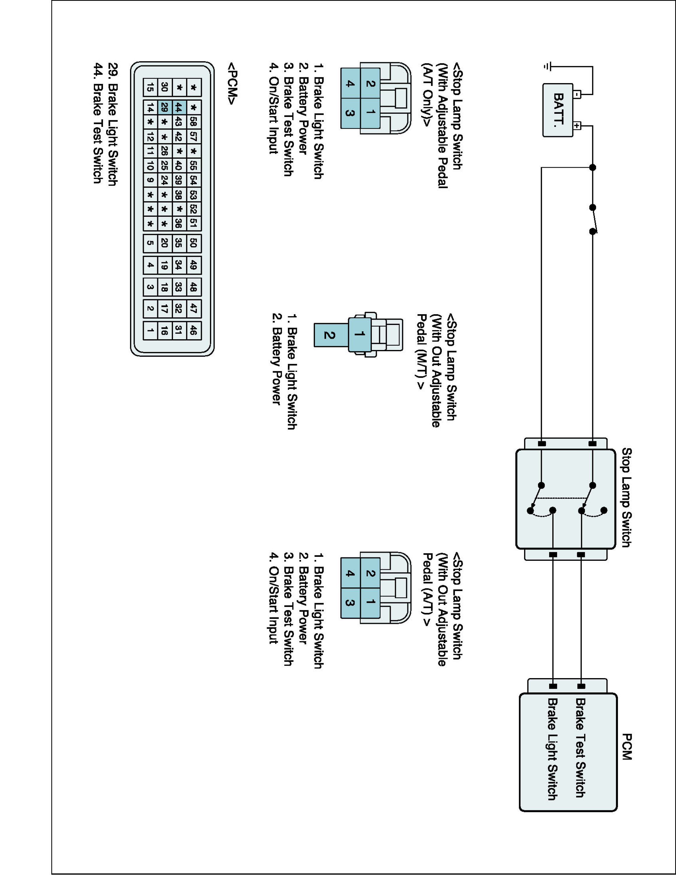 The Stop lamp switch is used to judge whether the acceleration system is abnormal or not. The stop lamp switch has a duplex system (signals brake test or brake light) to memorize the abnormality when the signals of depressing and releasing the brake pedal are detected simultaneously.