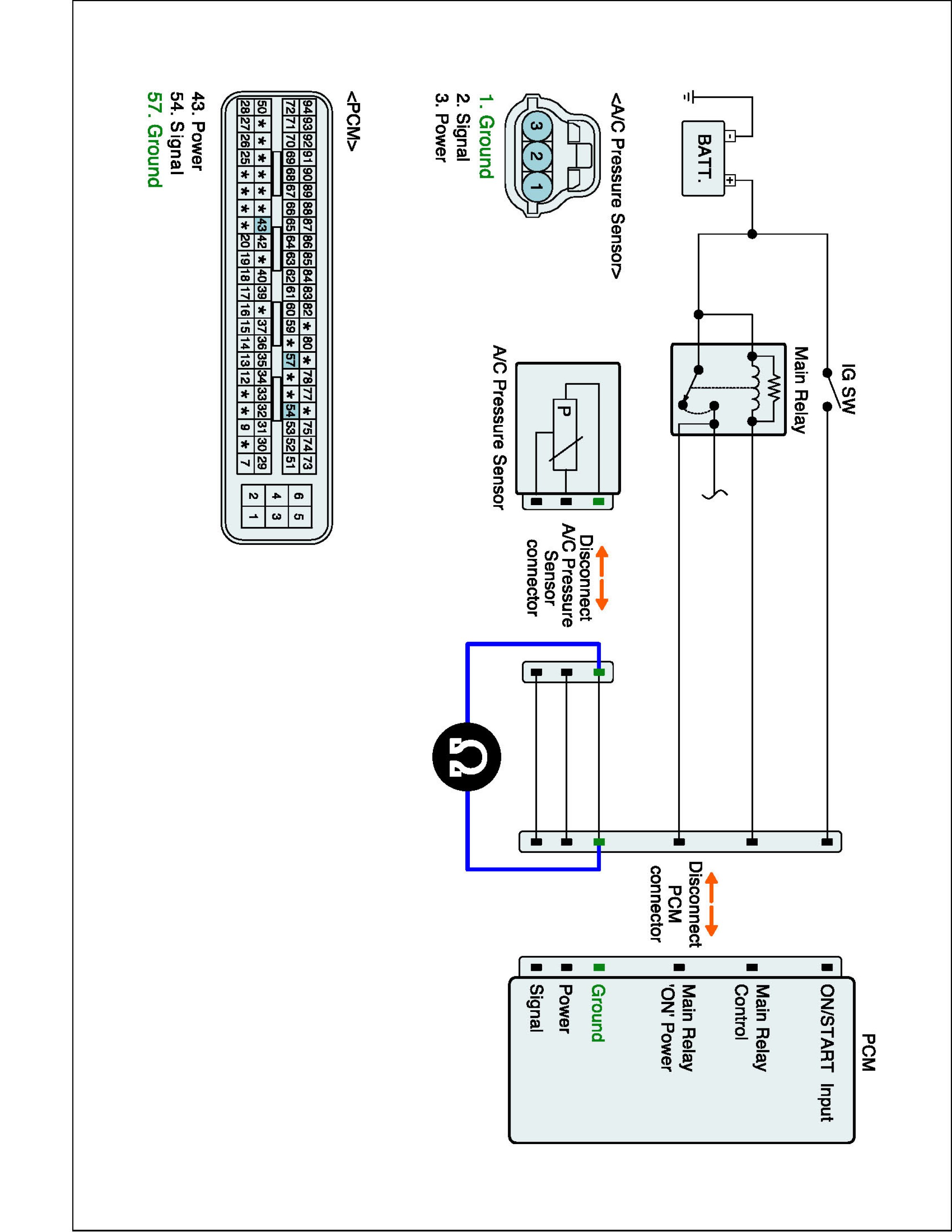 2. Disconnect A/C pressure S. harness connector and PCM harness connector.