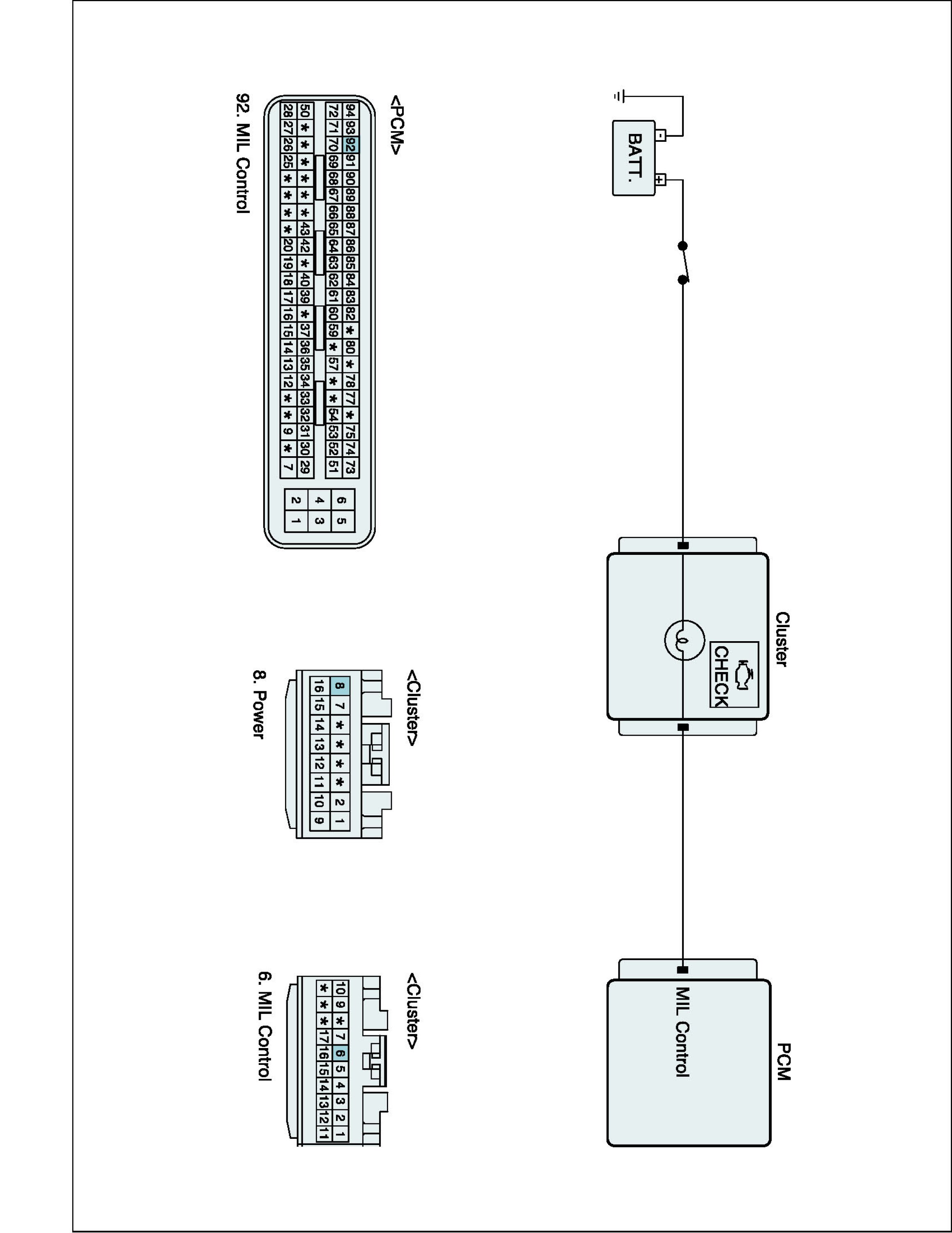 PCM sets DTC P0650 if the PCM detects that the MIL control line is open or short circuit to ground or battery line.