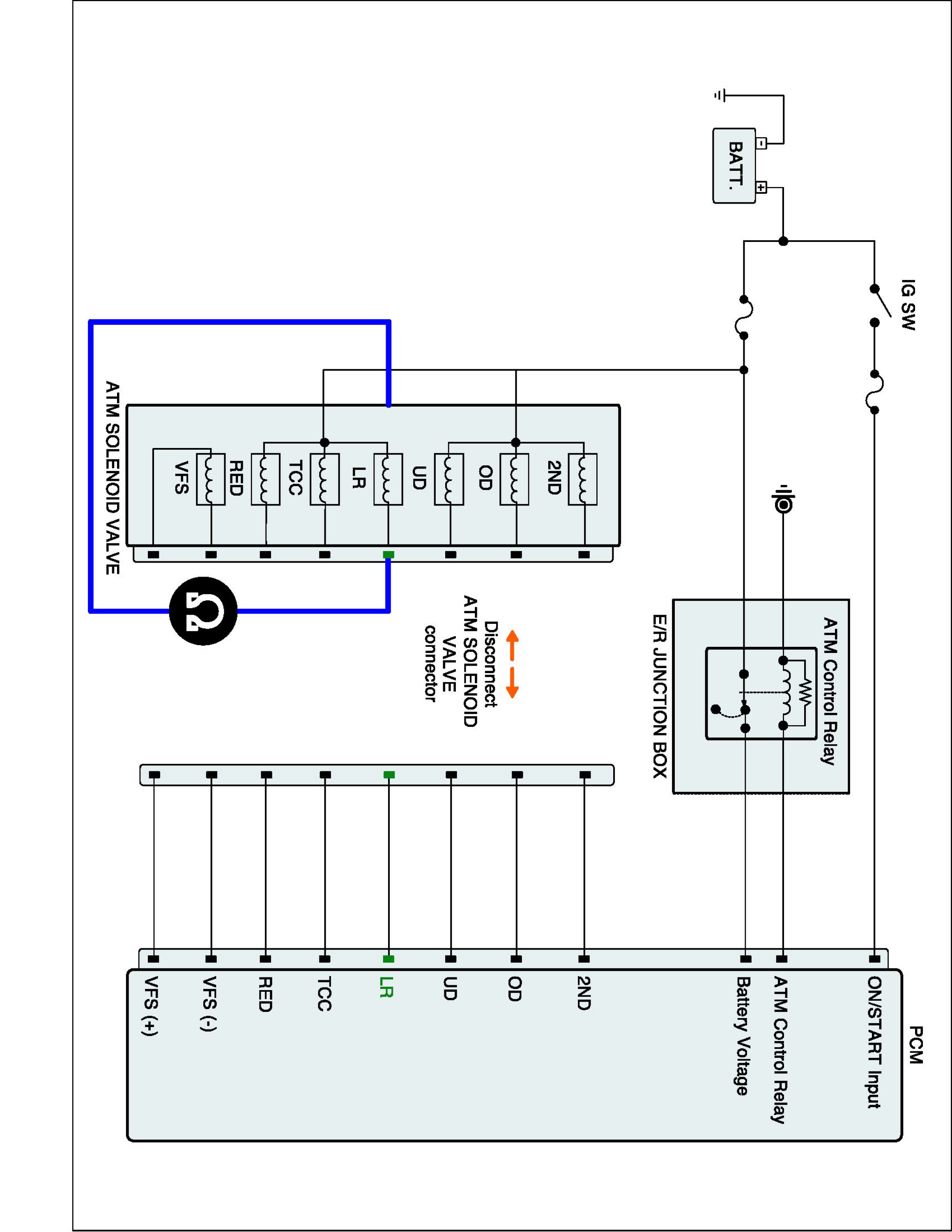 3. Measure resistance between "LR SOLENOID V/V" terminal and Power supply terminal of the ATM SOLENOID VALVE harness connector.