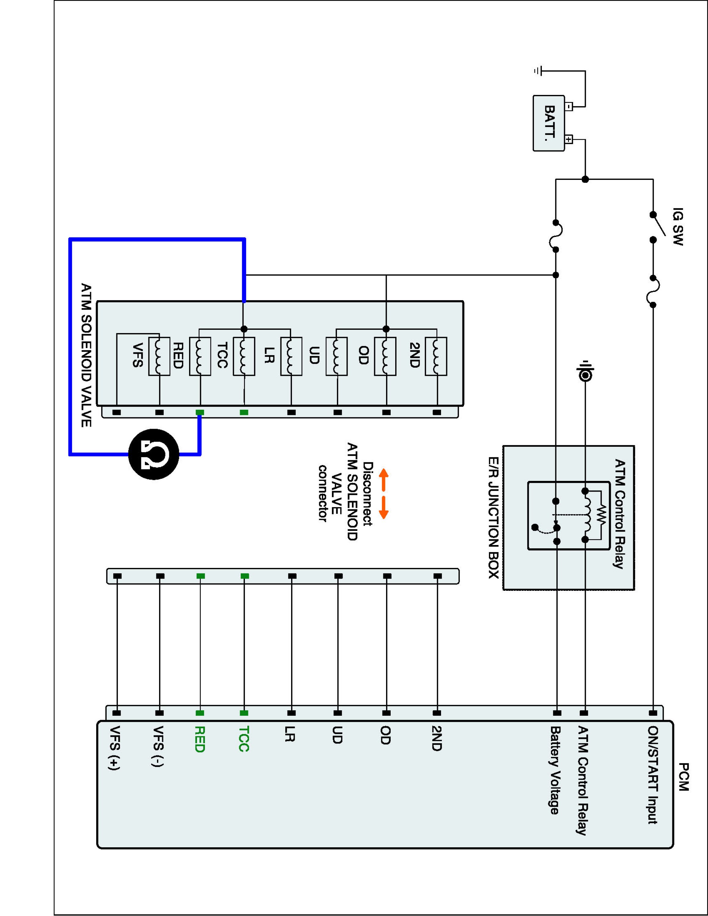 2. Disconnect "A/T SOLENOID VALVE" connector