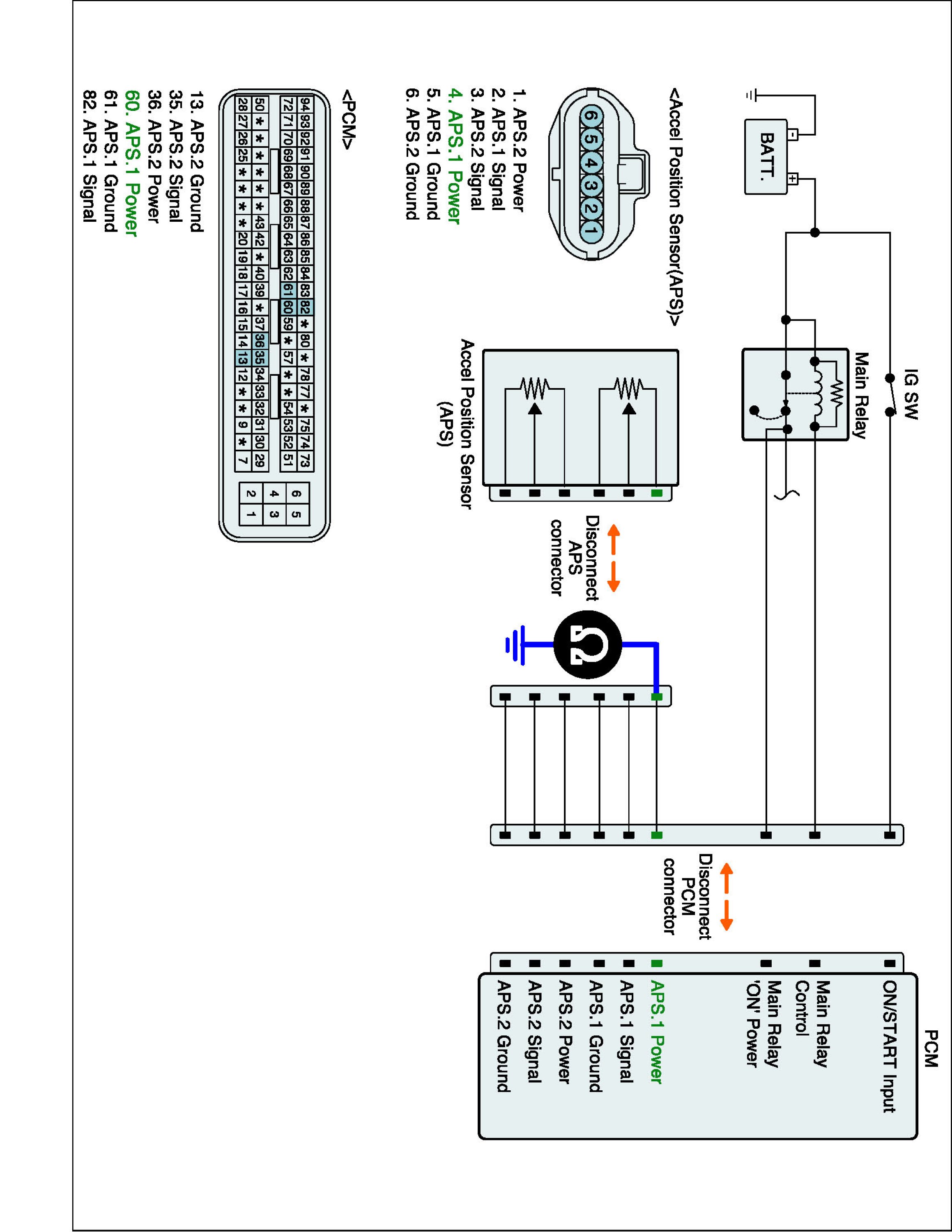 2. Disconnect APS harness connector and PCM harness connector.