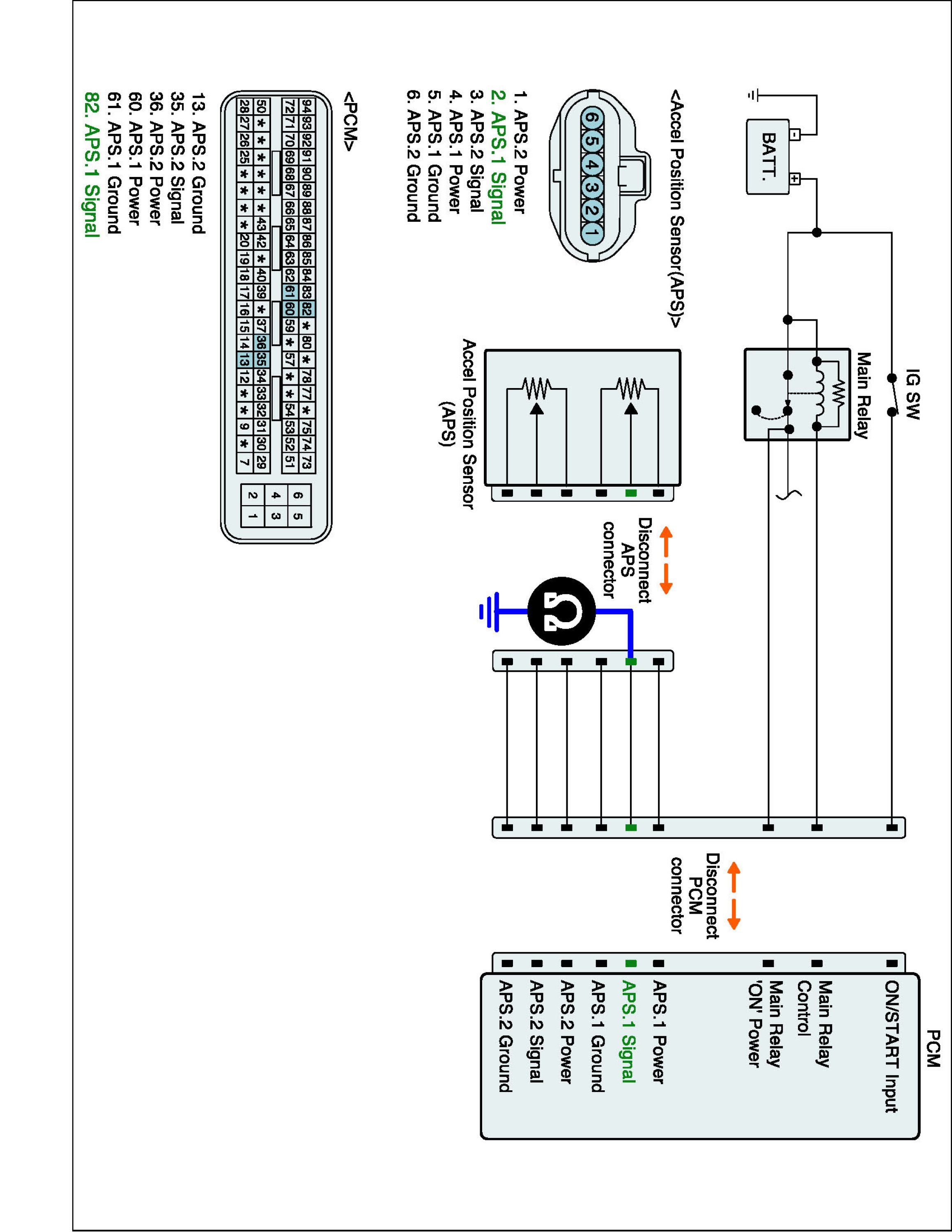 3. Measure resistance between both ends of APS1 signal line.