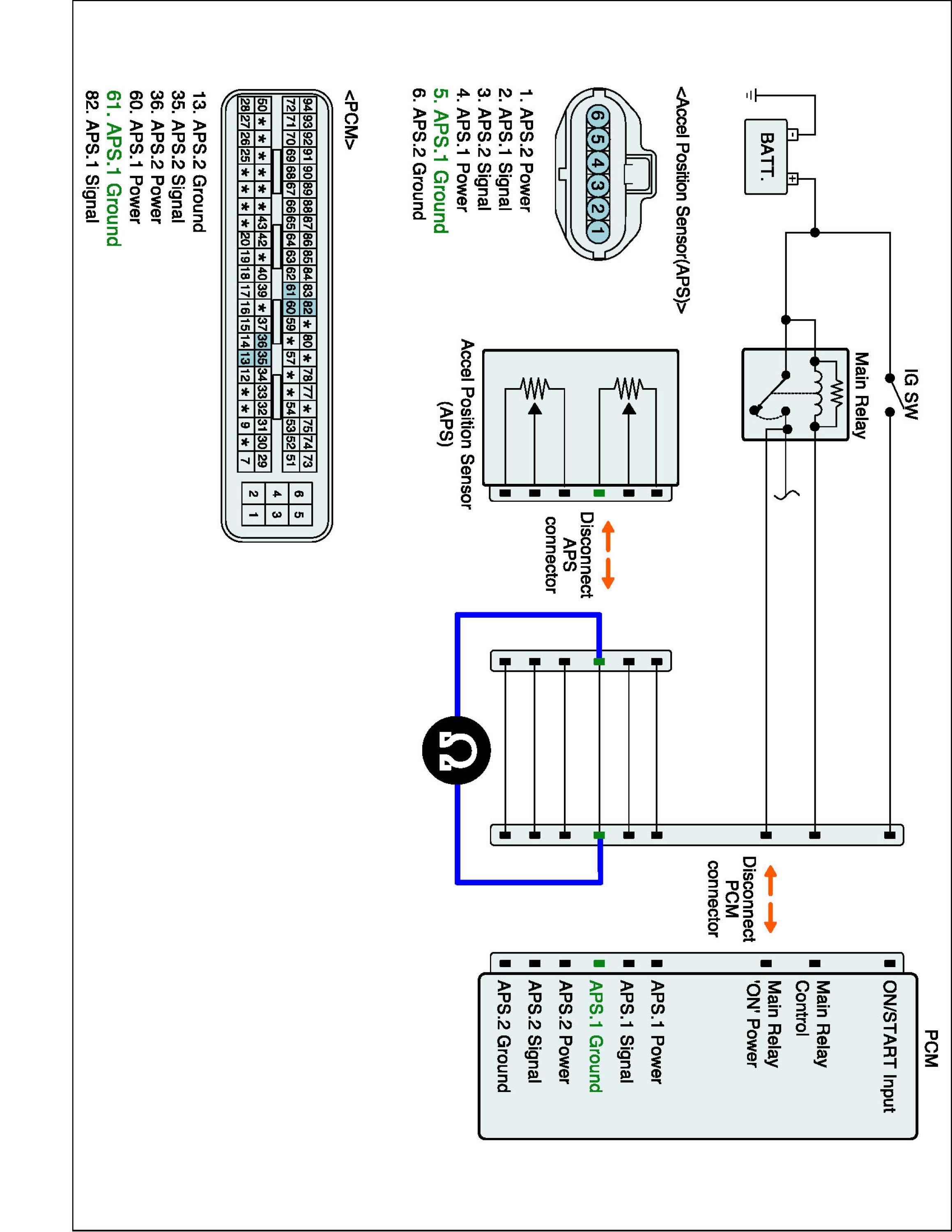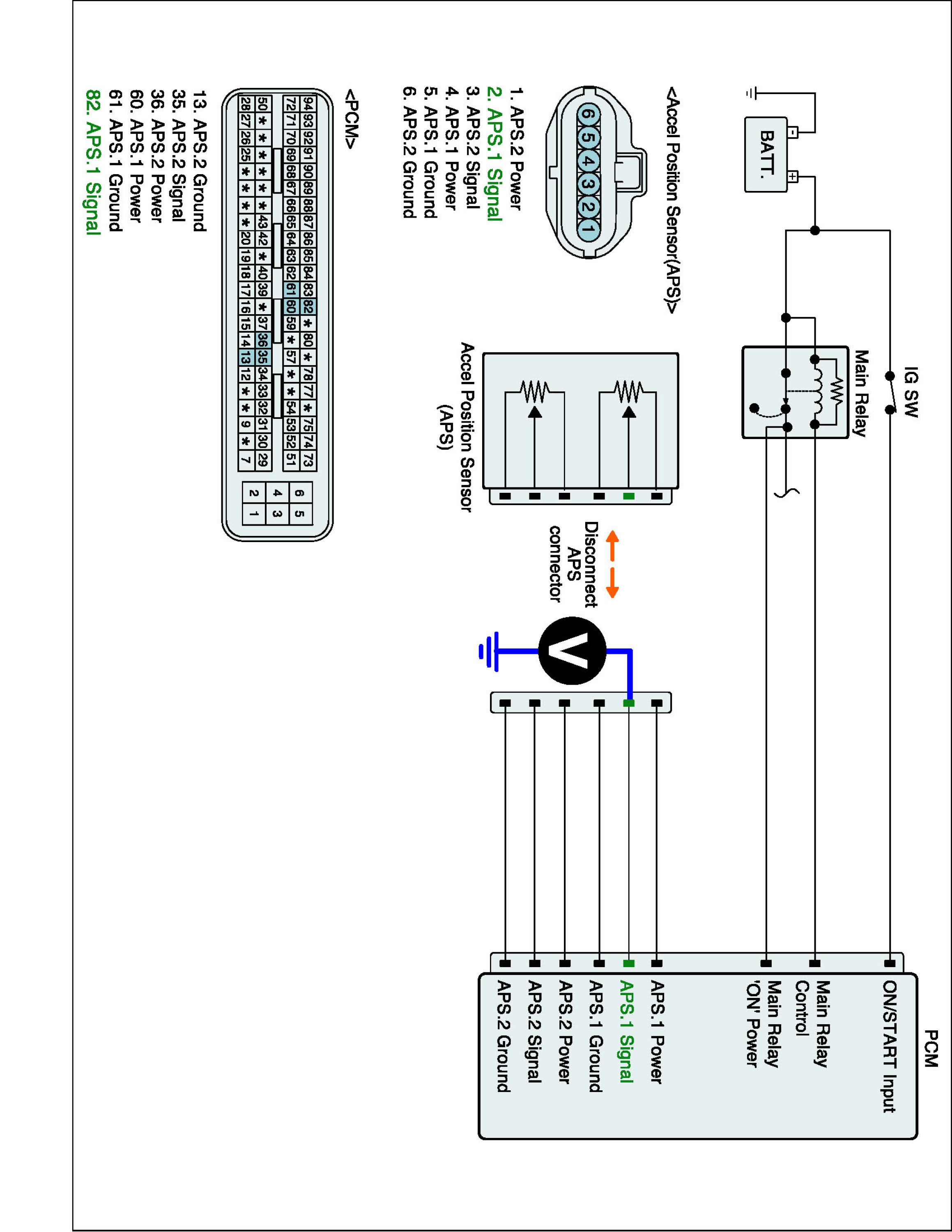 4. Measure voltage between APS1 signal terminal of APS harness connector and chassis ground.