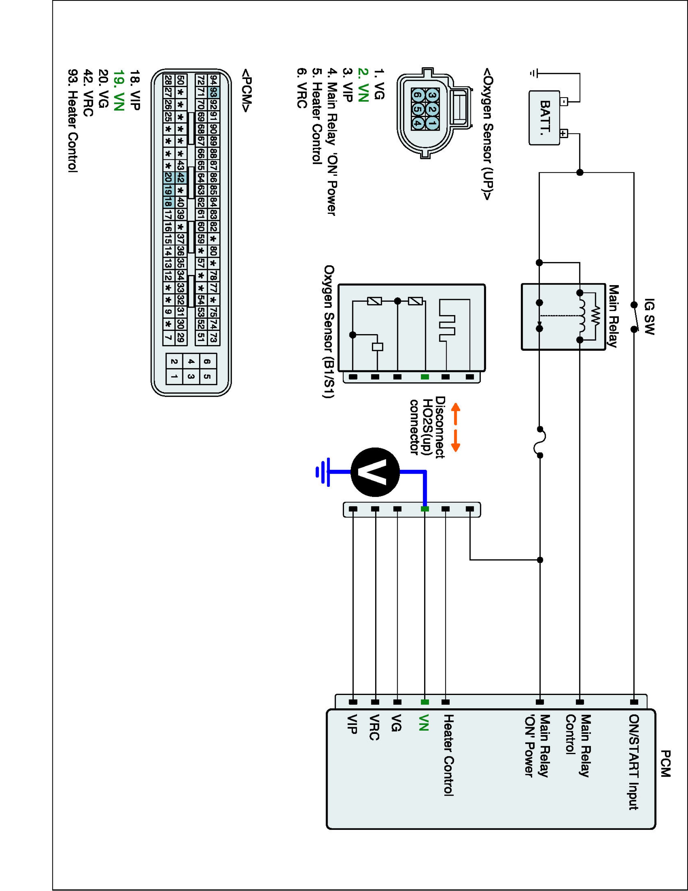 5. Measure resistance between VN terminal and other terminals of the HO2S harness connector.
