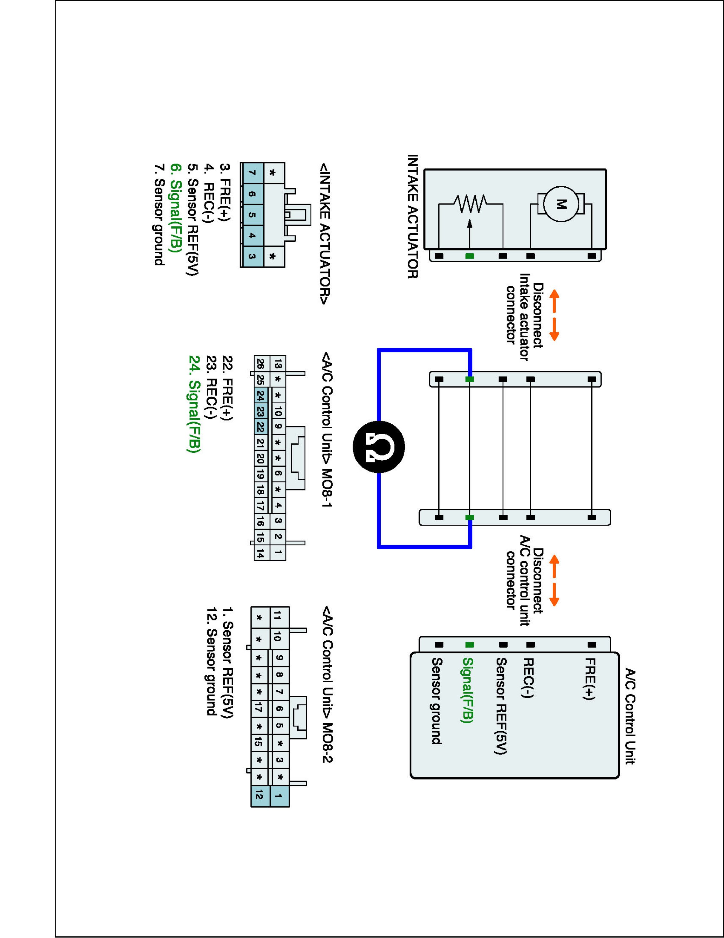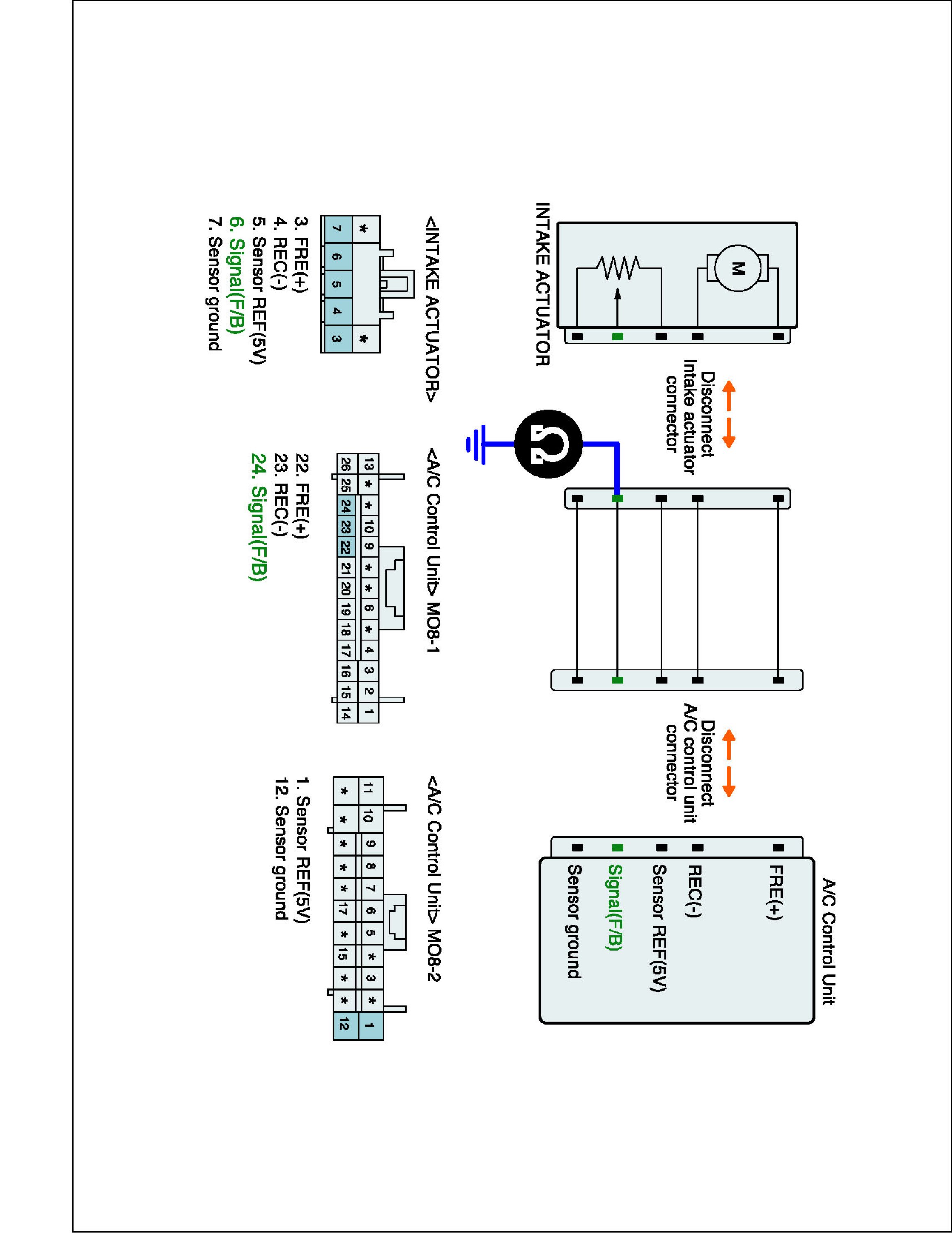 3. Measure resistance between Signal (F/B) terminal of Intake actuator harness connector and Signal (F/B) terminal of A/C-ECU harness connector.