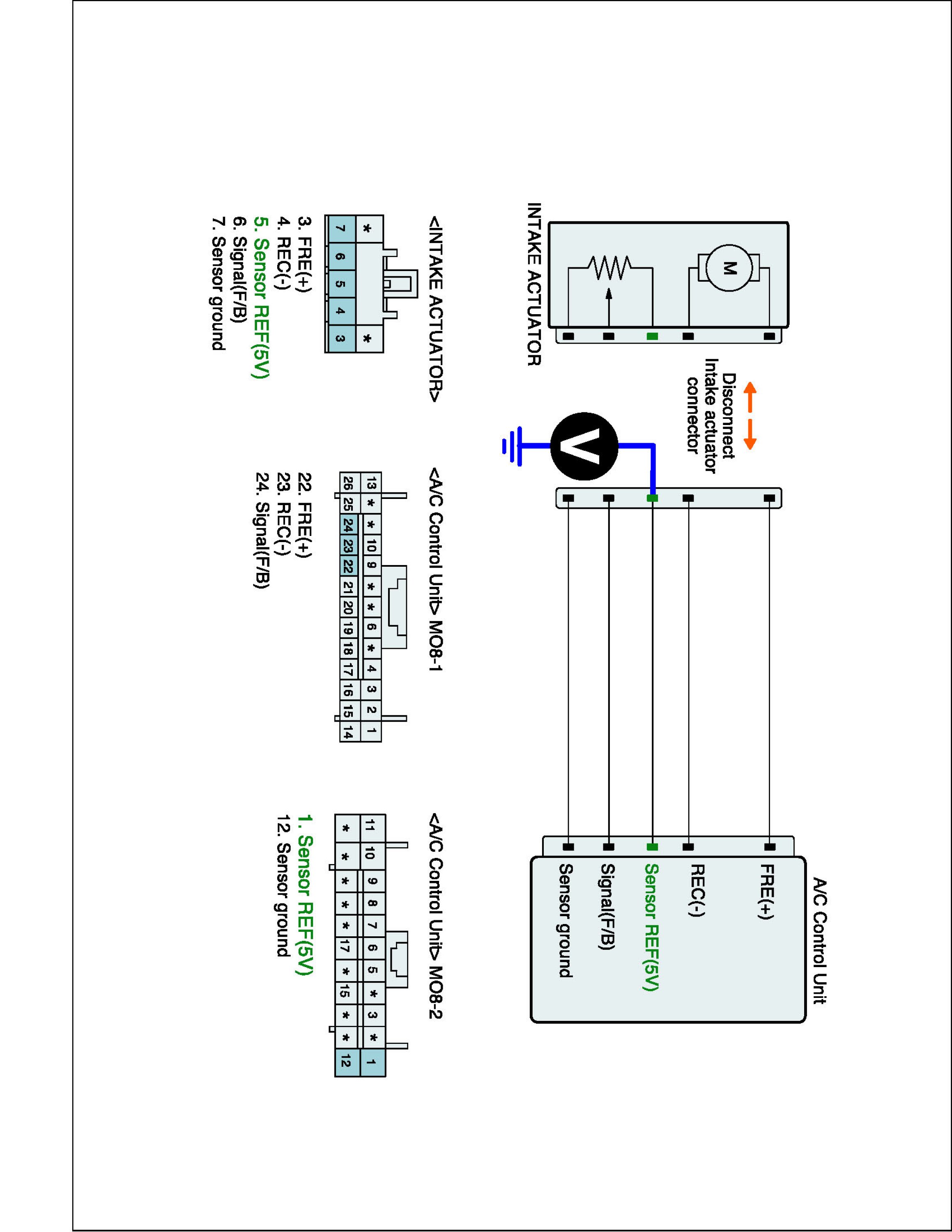 4. Measure voltage between Sensor REF (5 V) terminal of Intake actuator harness connector and chassis ground.