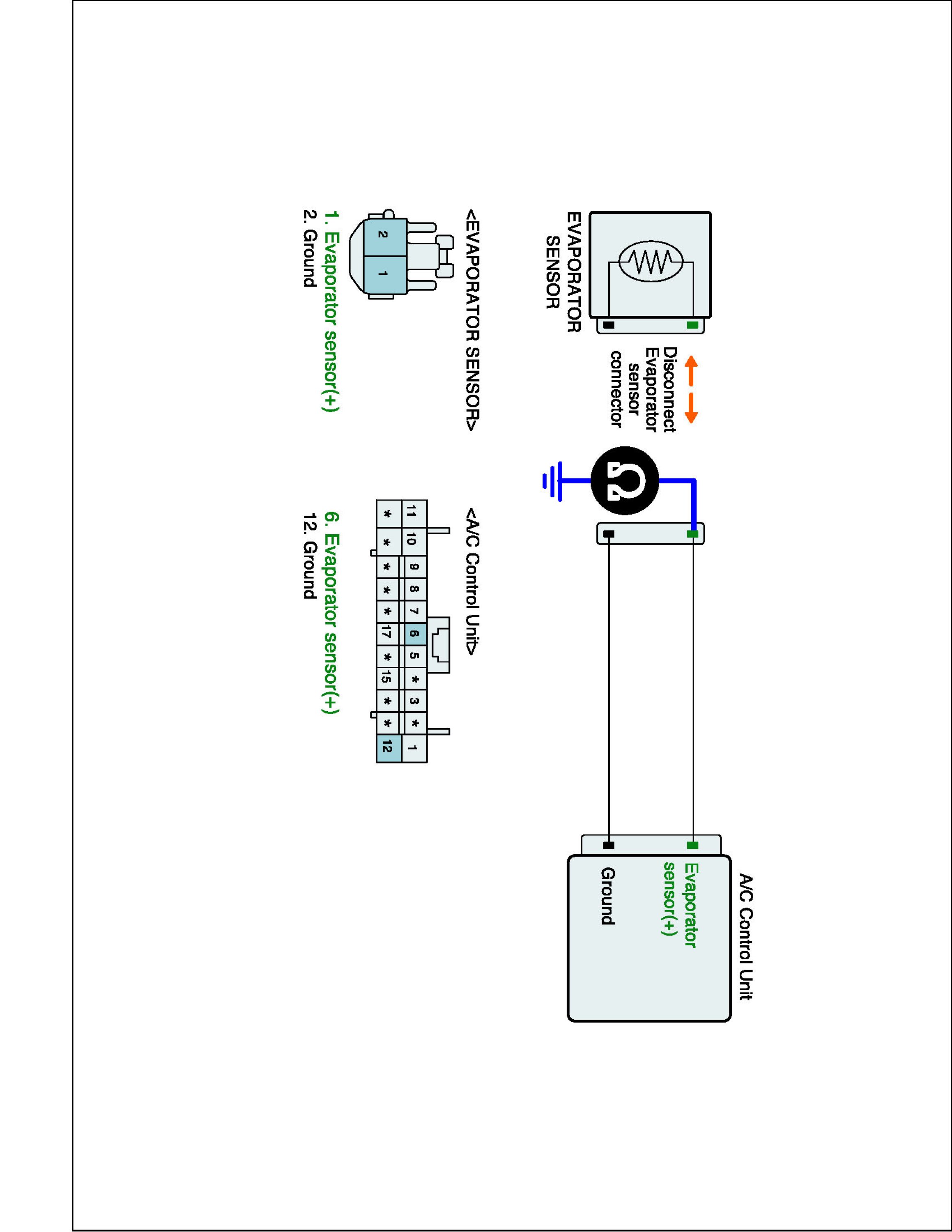 2. Disconnect Evaporator sensor and Connect A/C control unit main harness connector.