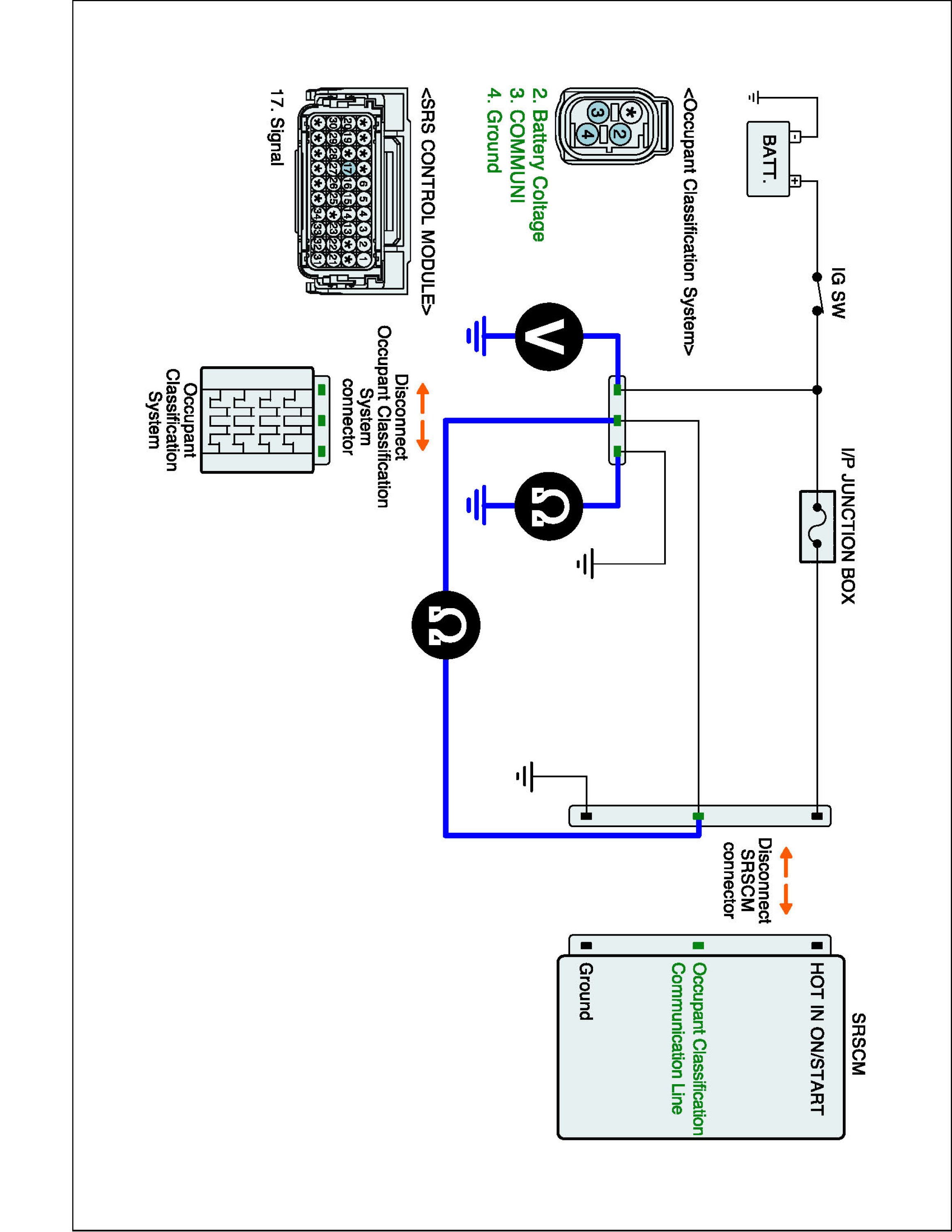 (1) Measure resistance between terminal SRSCM Communication Line to terminal Occupant Classification Communication Line connector.