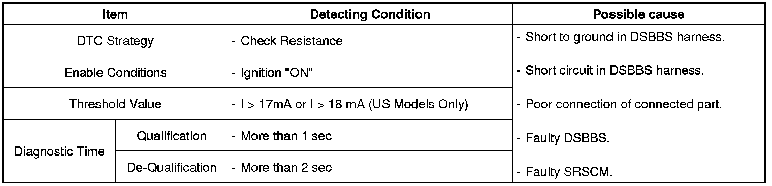 The SRSCM sets DTC B1512 if there is a short or short to ground in DSBBS harness.