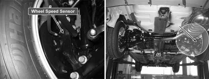 The wheel speed sensor is the essential component the ABS ECU uses to calculate vehicle speed and to determine whether wheel lock occurs.