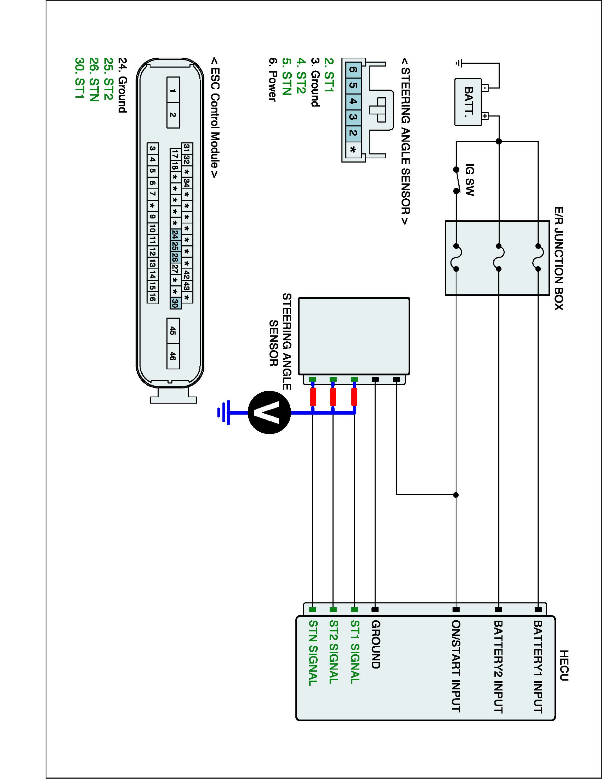 2. Measure voltage between signal terminal of the steering angle sensor harness connector and chassis ground.