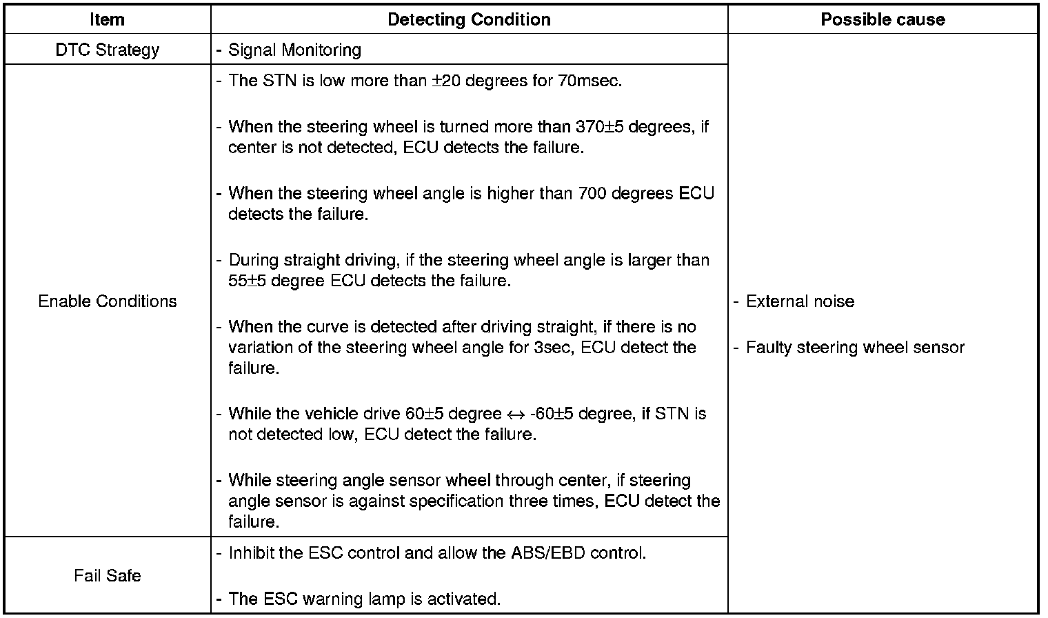 If there is no variation of the steering wheel angle for predefined time ECU detect the failure.