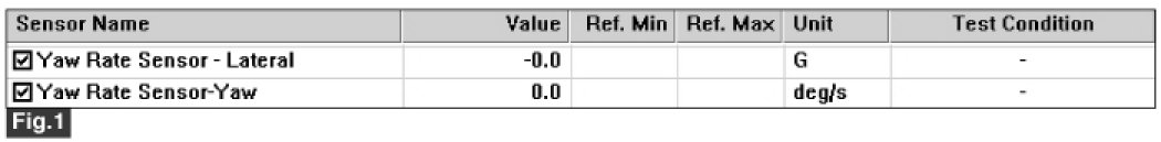 3. Monitor the "Lateral G Sensor, Yaw Rate Sensor" parameter on the Scantool.