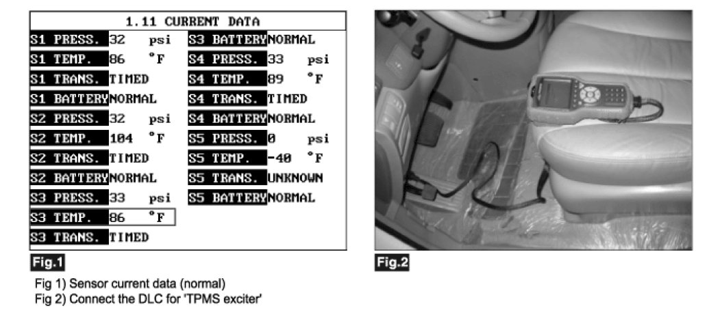 1. Connect 'TPMS exciter' or scantool to Data Link Connector (DLC).