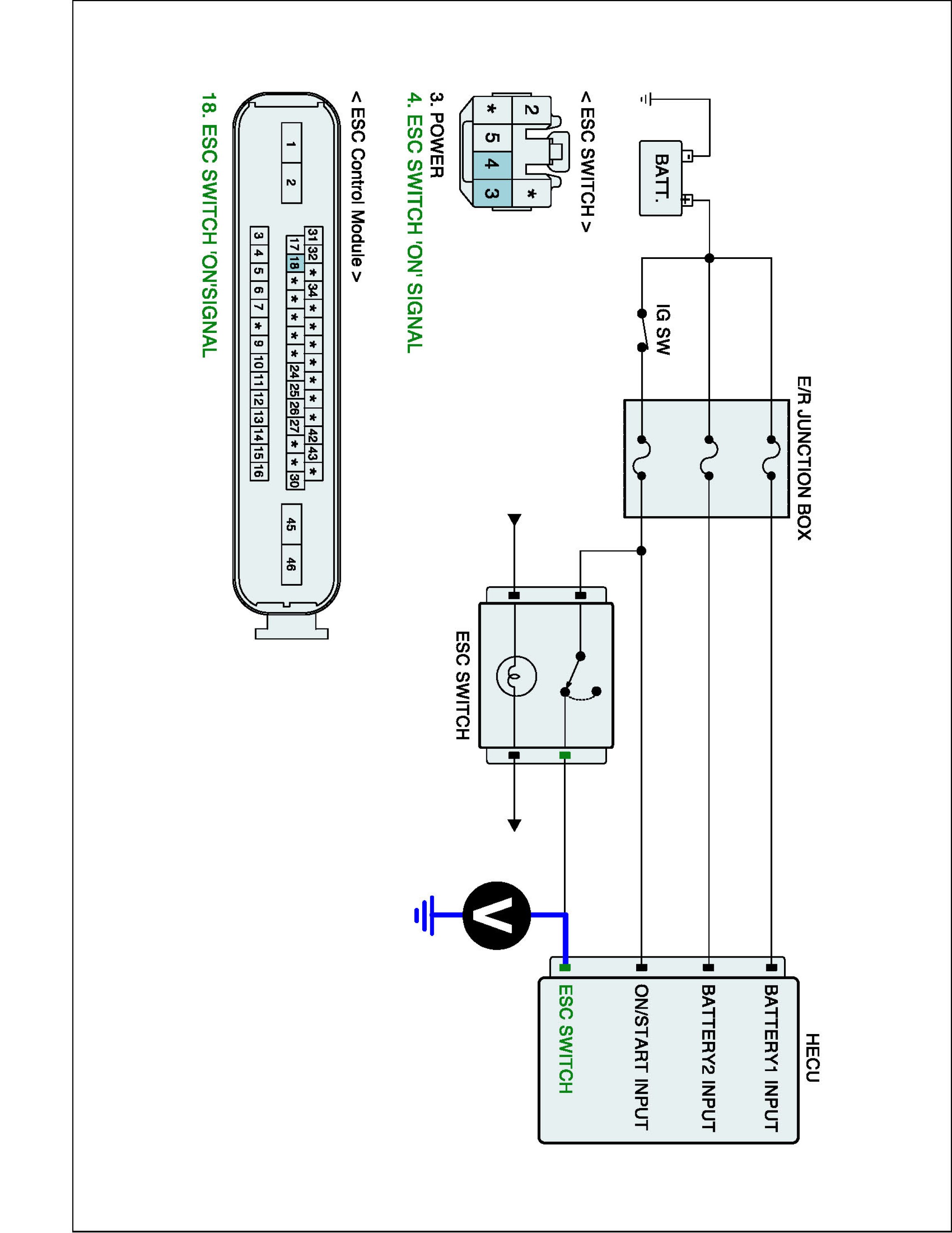 3. Measure voltage between ESC switch signal terminal of the HECU harness connector and chassis ground.
