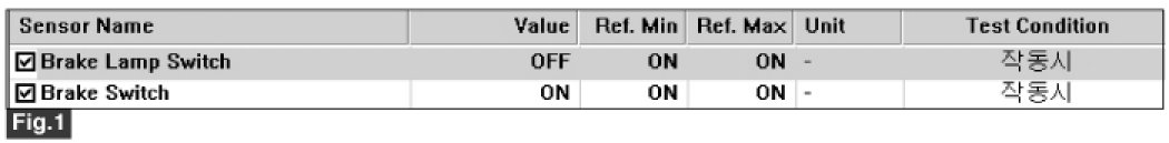 Fig.1) Normal data of Brake Lamp Switch and Brake Switch with not pressing the brake pedal.