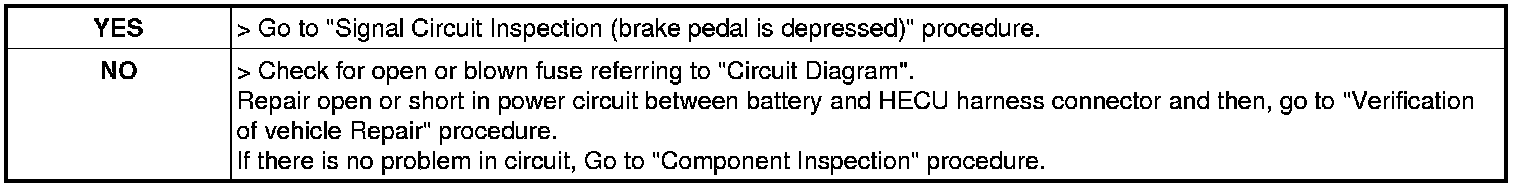 Signal Circuit Inspection (brake pedal is pressed)