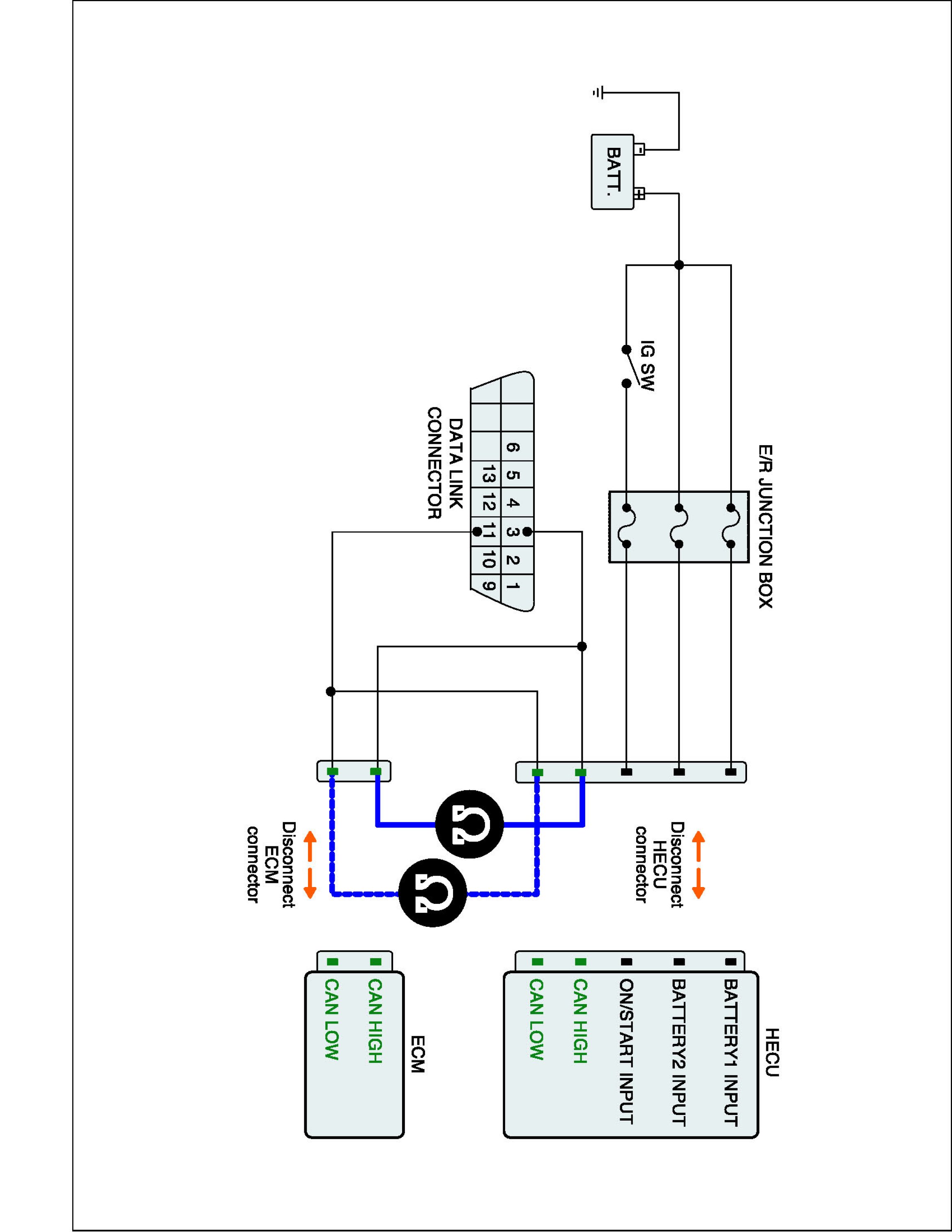 3. Measure resistance between CAN HIGH, LOW terminal of the HECU harness connector and CAN HIGH, LOW terminal terminal of the ECM harness connector.