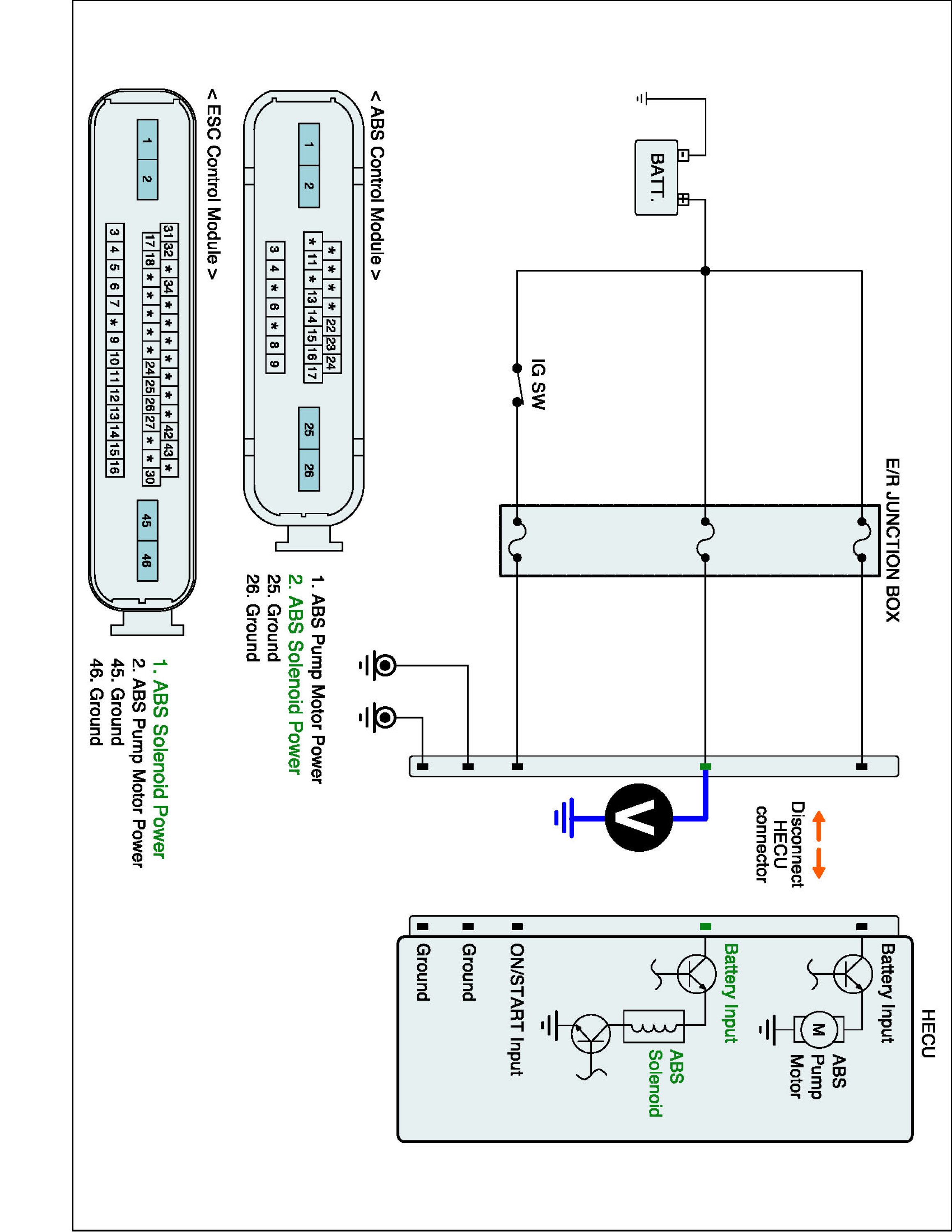 2. Measure voltage between power terminal of the HECU harness connector and chassis ground.