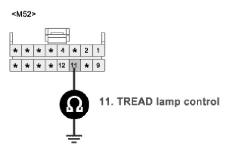 3. Measure resistance between terminal "11" of TPMS receiver harness connector and terminal "8" of instrument cluster harness connector.