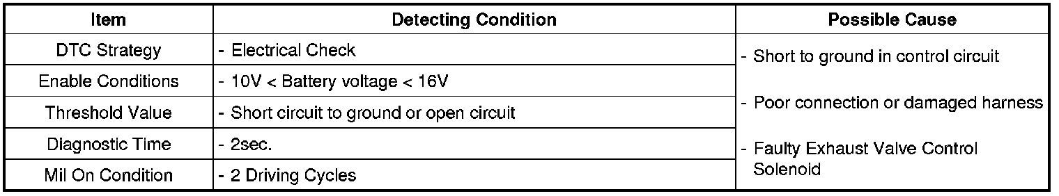 PCM sets DTC P0079 if the PCM detects that the exhaust valve control solenoid control circuit is short to ground.