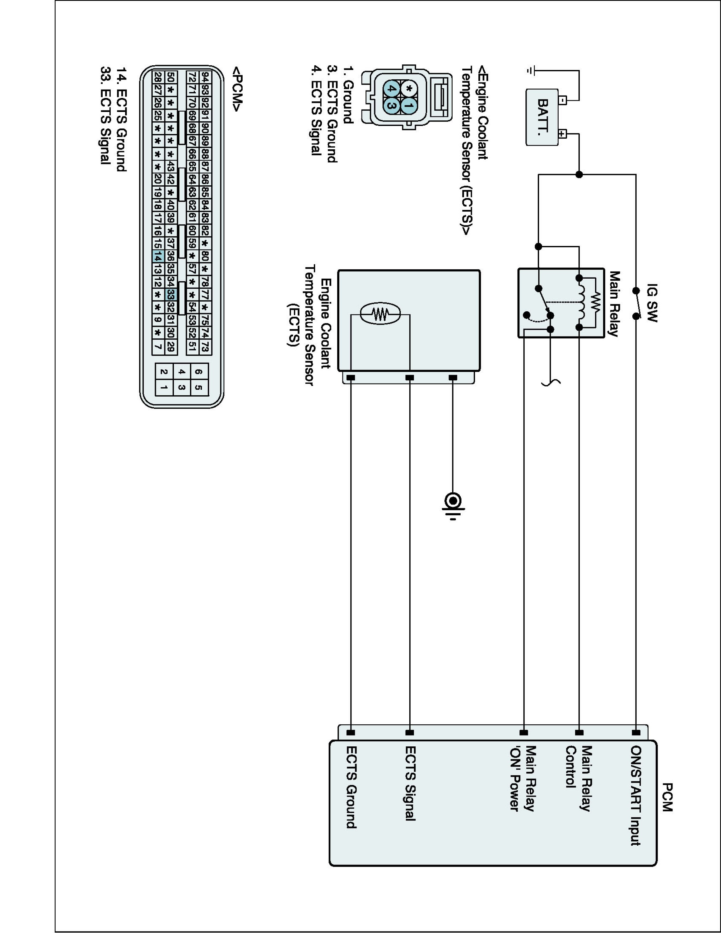 An Engine Coolant Temperature Sensor (ECTS) monitors the temperature of the coolant. This input is used by the PCM for engine control and as an enabling criteria for same diagnostics. The air flow coming into the engine is accumulated and used to determine if the engine has been driven within conditions that would allow the engine coolant to heat up normally to the thermostat regulating temperature. If the coolant temperature does not reach regulating temperature of the thermostat, diagnostics that use engine coolant temperature as enabling criteria, may not run when expected.