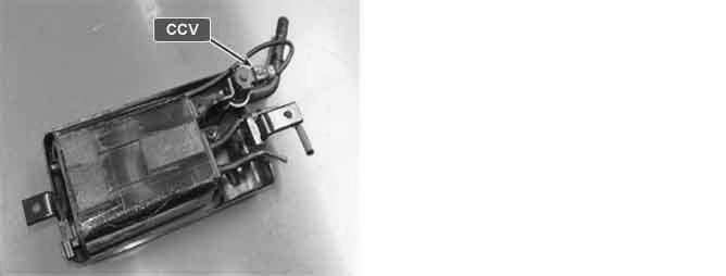 The evaporative emissions system prevents hydrocarbon (HC) vapors from the fuel tank from escaping into the atmosphere where they could form photochemical smog. Gasoline vapors are collected in the charcoal canister. The Canister Closing Valve (CCV) closes off the air inlet into the canister for leak detection of the evaporative emission system. The CCV also prevents fuel vapors from escaping from the canister. When the engine purges the HC vapors from the canister, the clean air comes into the canister through the canister air-filter and the CCV.