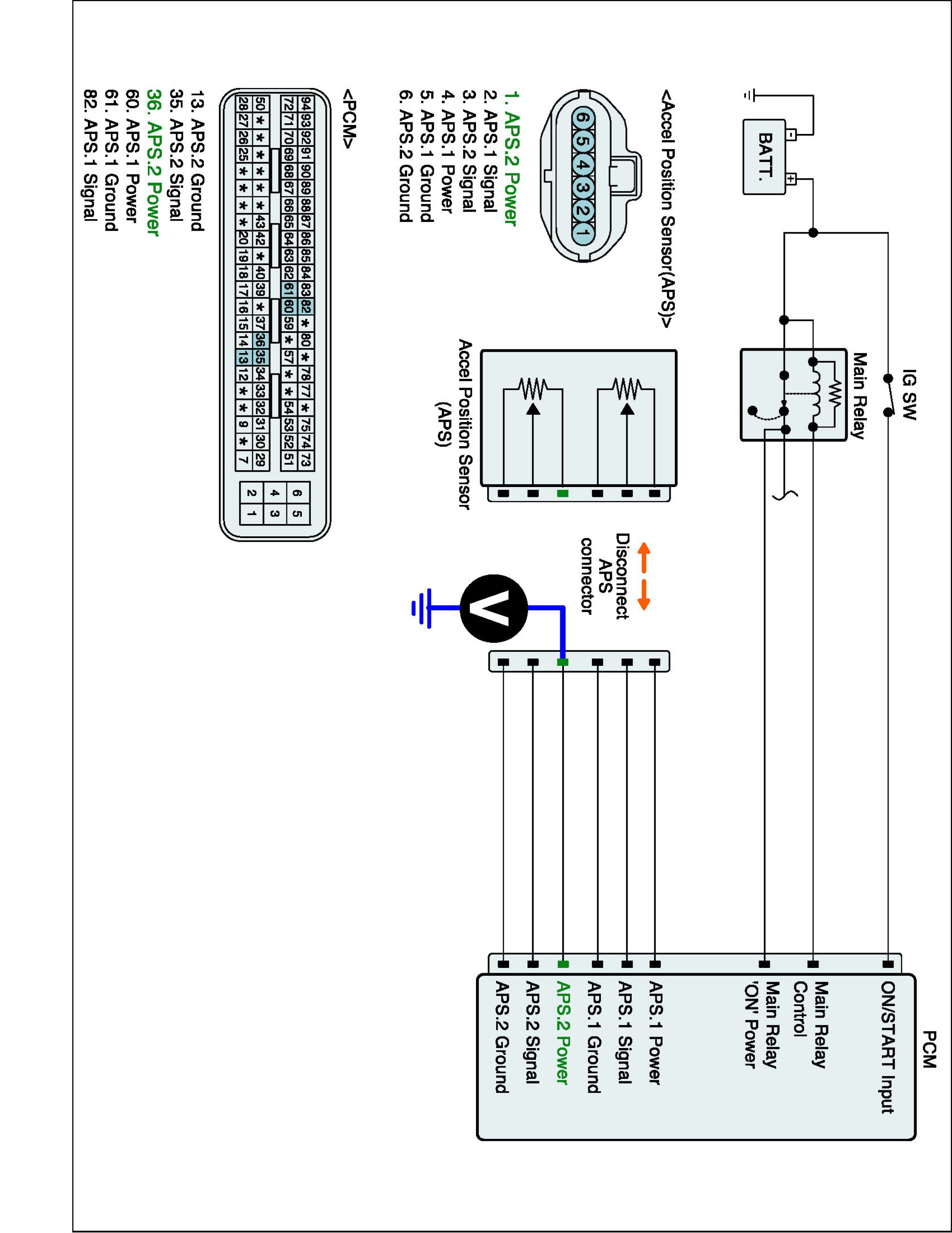 4. Measure voltage between APS2 power terminal of APS harness connector and chassis ground.