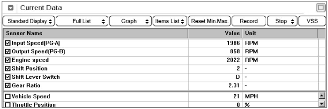 3. Monitor the "INPUT & OUTPUT SPEED SENSOR" parameter on the scantool
