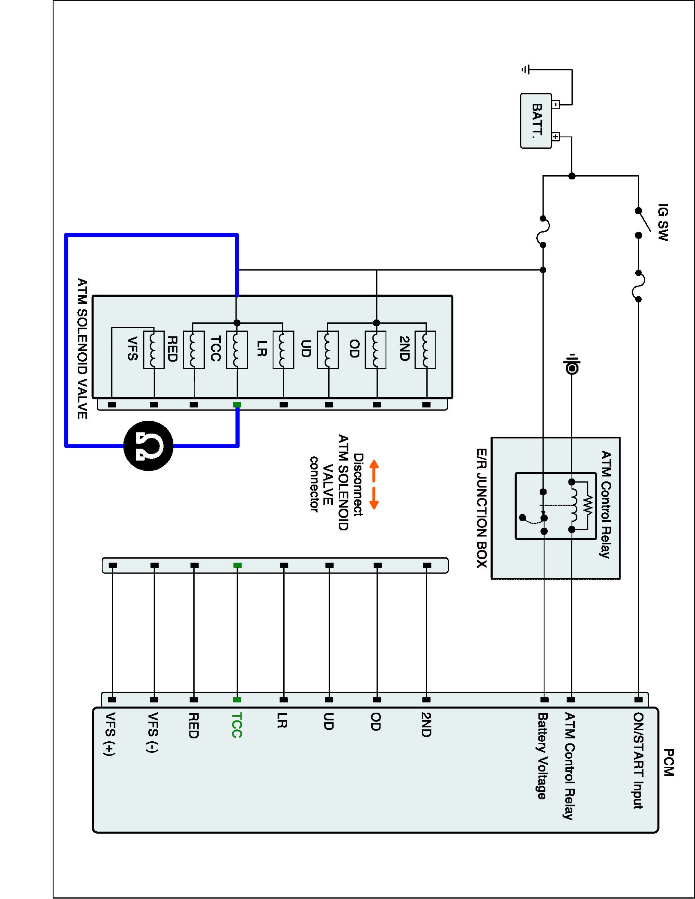 2. Disconnect "A/T SOLENOID VALVE" connector