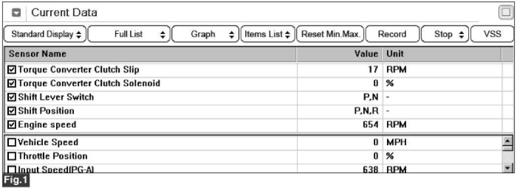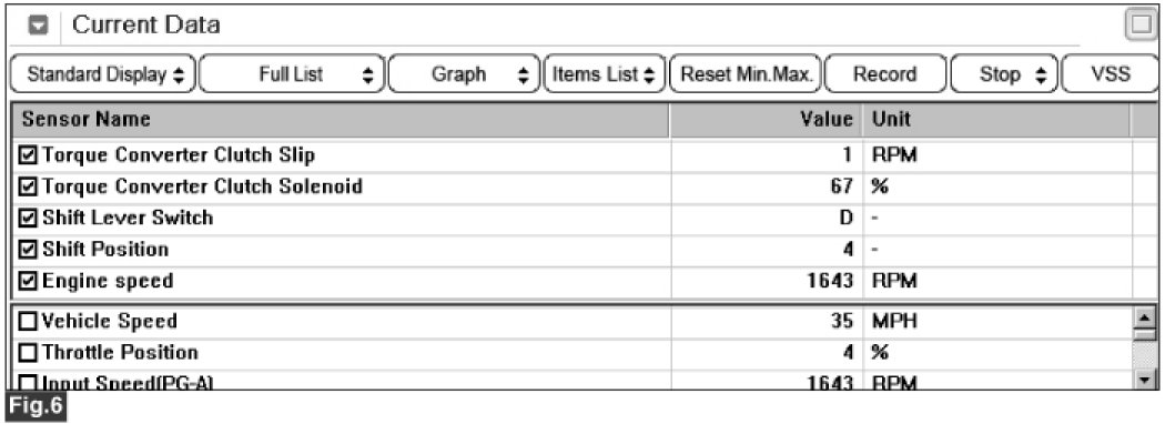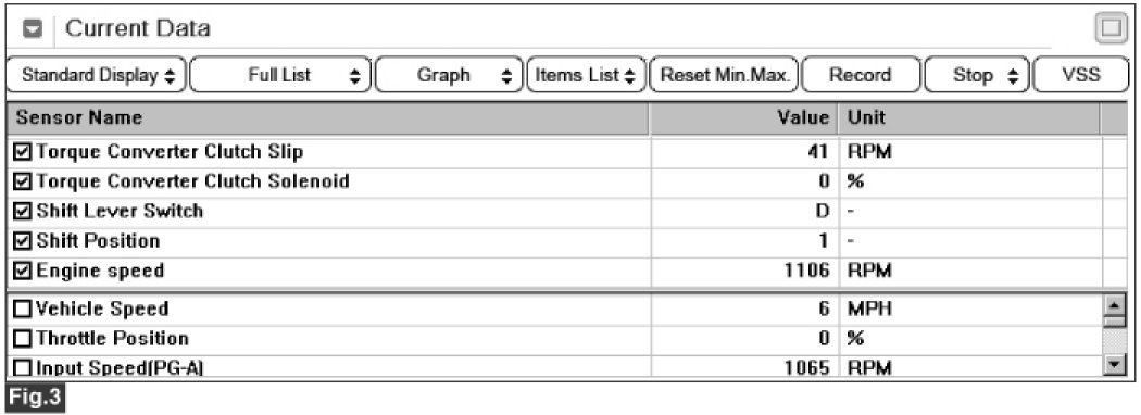 3. Monitor the "TCC SOL. VALVE" parameter on the scantool
