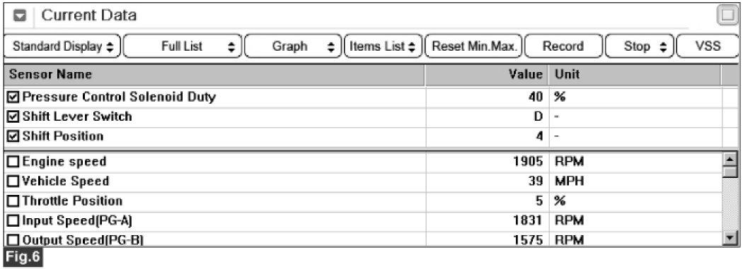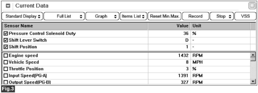 3. Monitor the "PRESS CONTROL SOL. VALVE" parameter on the scantool.