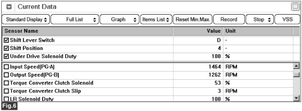 5. Does "UD SOLENOID DUTY " follow the referance data?
