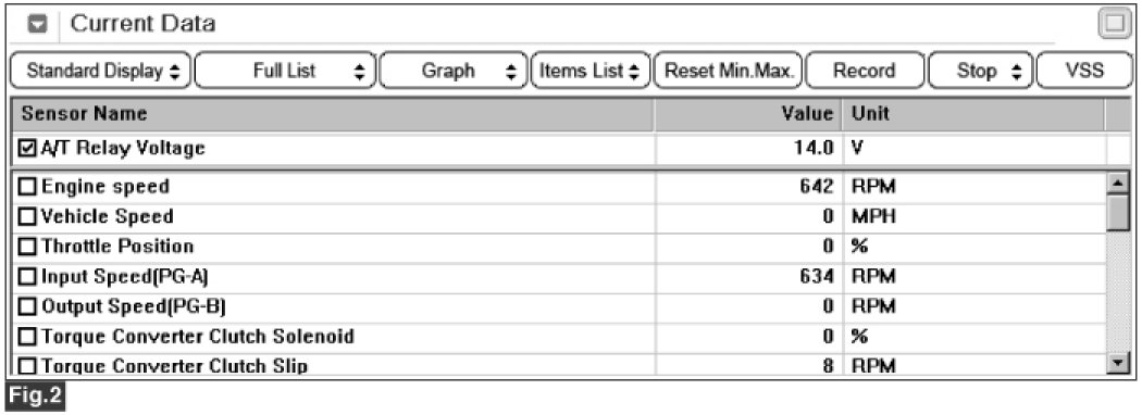 3. Monitor the "A/T CON. RELAY VOLT" parameter on the scantool