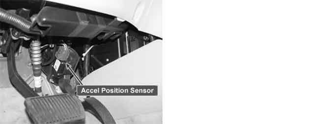 The Electronic Throttle Control (ETC) system is made of the components throttle body, Throttle Position Sensor (TPS) 1&2 and Accelerator Position Sensor (APS)1&2.The APS is mounted in the accelerator pedal to detect the opening angle of the accelerator pedal. It has 2 sensors to detect the accelerator position and a malfunction of the accelerator position sensor. The PCM judges the current opening angle of the accelerator pedal from APS1&2, and the PCM controls the throttle motor based on these signals.