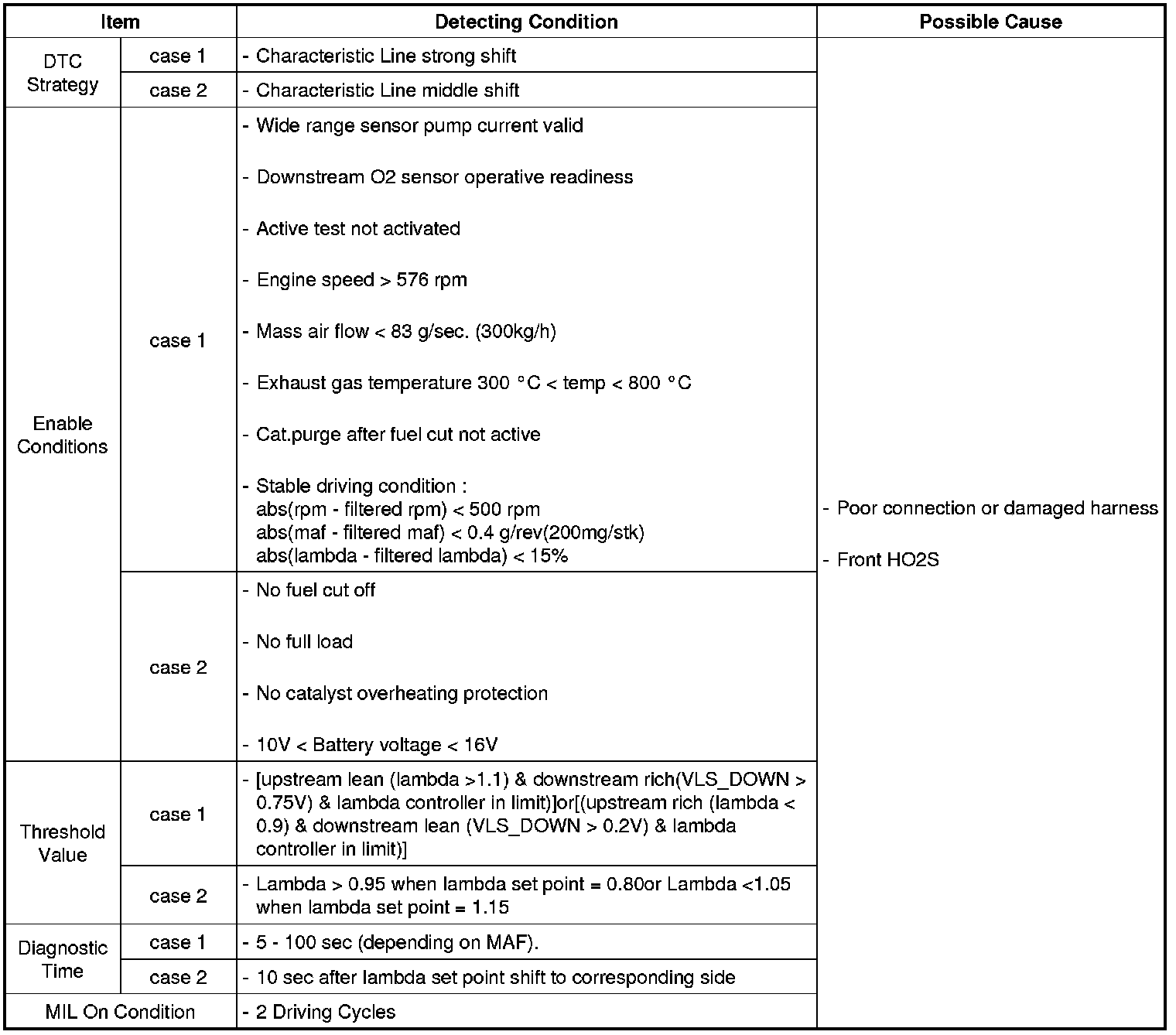 DTC Detecting Condition