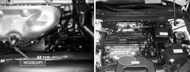 The linear O2 sensor is mounted on the front side of the Catalytic Converter (warm-up catalytic converter) or in the front exhaust pipe. It detects a wide range of air/fuel ratios in the exhaust gas from the rich to lean regions. This linear O2 sensor produces a current that corresponds to a specific air/fuel ratio. The PCM monitors this signal and determines whether the air/fuel mixture is rich or lean. The PCM constantly monitors the linear O2 sensor and increases or decreases the fuel injection duration using this signal. This is called closed-loop fuel control operation.