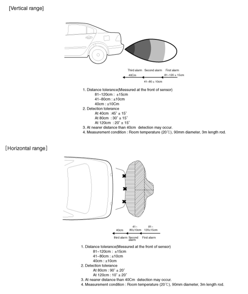 3. Detection range may be reduced by dirt accumulated on sensor, and extremely hot or cold weather.