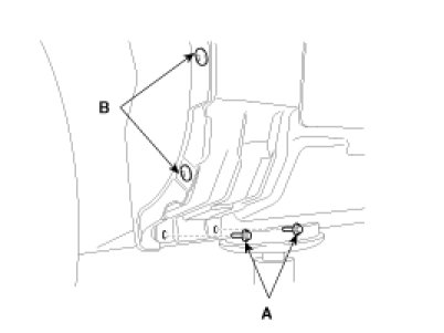 2. After loosening the fender mounting screws, remove the fender bumper mounting bracket (A).