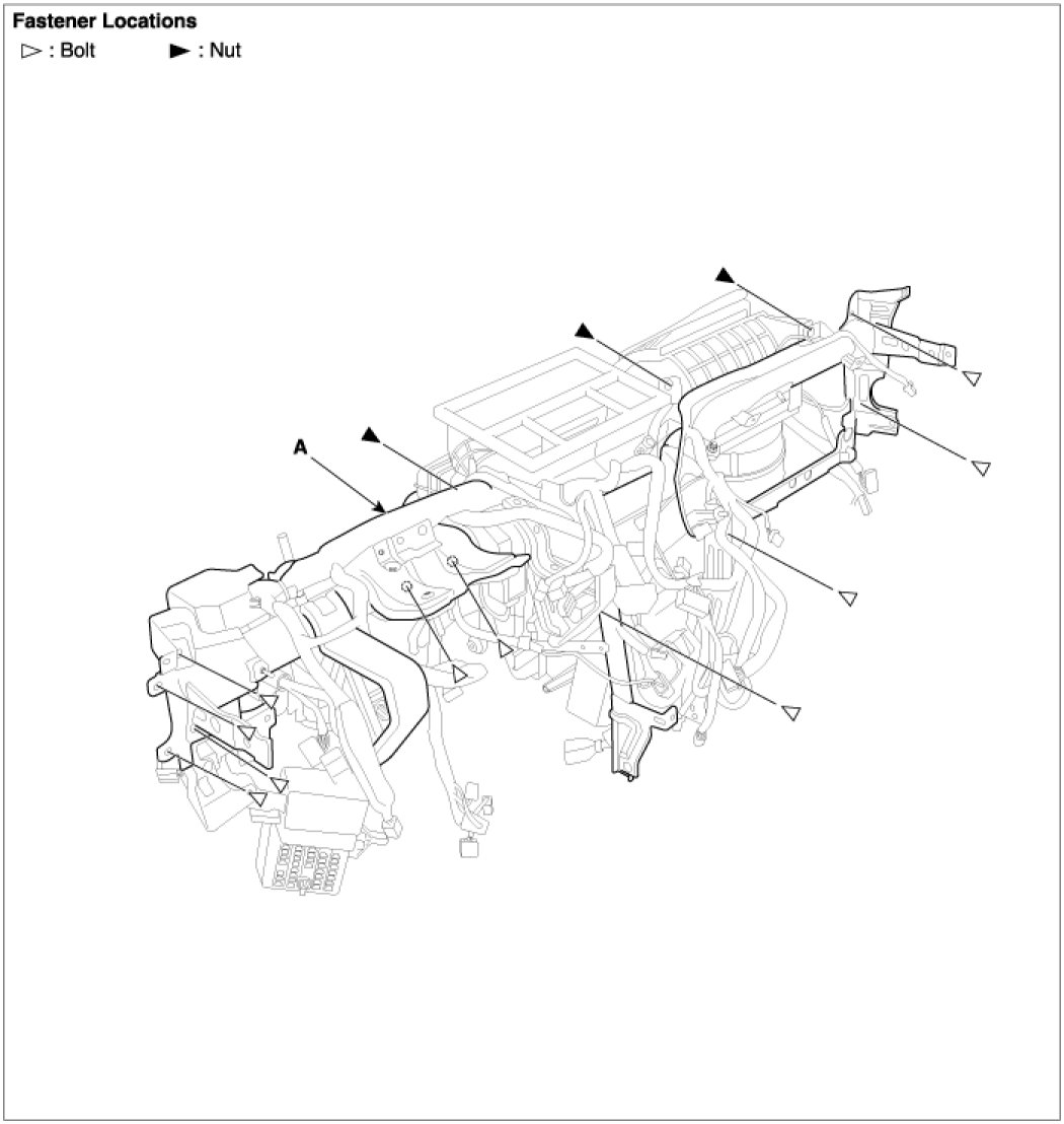- Before tightening the bolts, make sure the crash pad wire harnesses are not pinched.