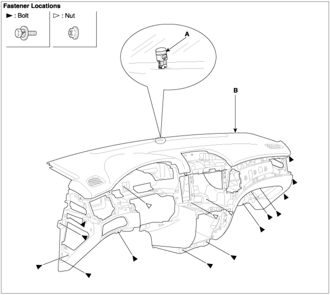 - Before tightening the bolts, make sure the crash pad wire harnesses are not pinched.