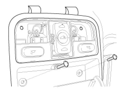 2. Open the sunglass case cover from the overhead console then remove the 2 screws holding the overhead console.