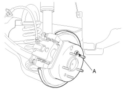 1. Remove the brake disc from hub using M8 screw(A) if the brake disc has been seized with the hub due to corrosion or overheat.