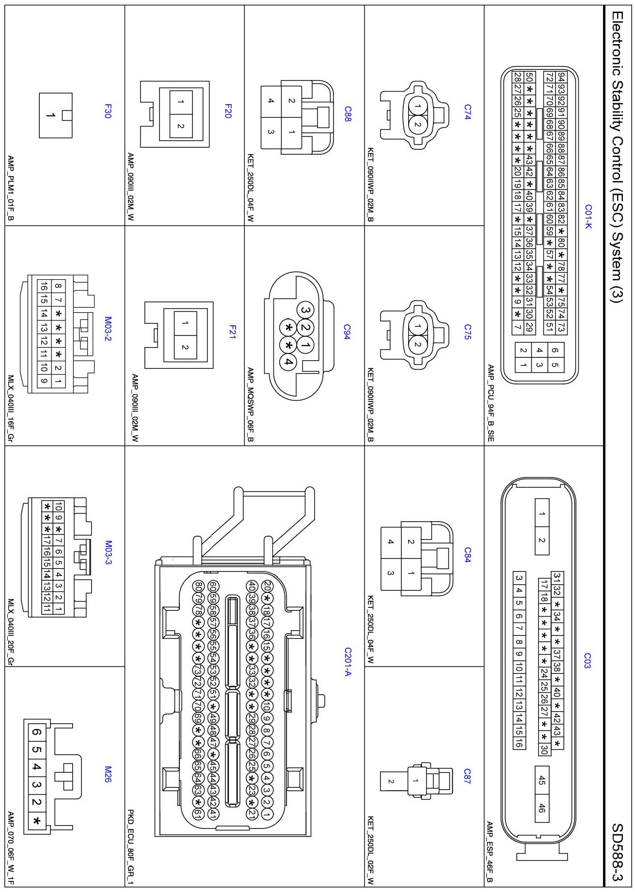 Electronic Stability Control (ESC) System (3) Connector Pin Outs: