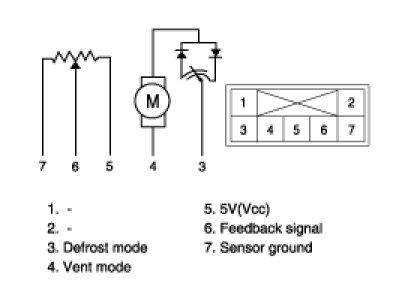 3. Verify that the mode control actuator operates to the defrost mode when connecting 12V to the terminal 3 and grounding terminal 4.