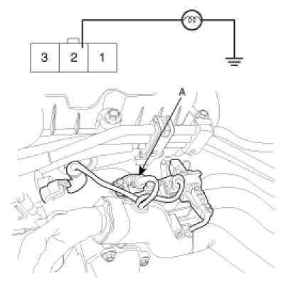 1. Disconnect the wiring connector (A) from the engine coolant temperature sender in the engine compartment.